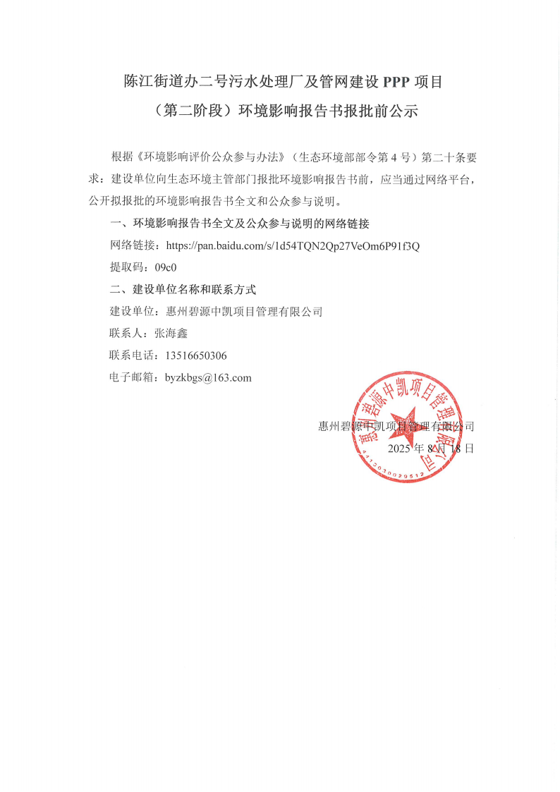 陳江街道辦二號污水處理廠及管網(wǎng)建設(shè)PPP項目(第二階段)環(huán)境影響報告書報批前公示